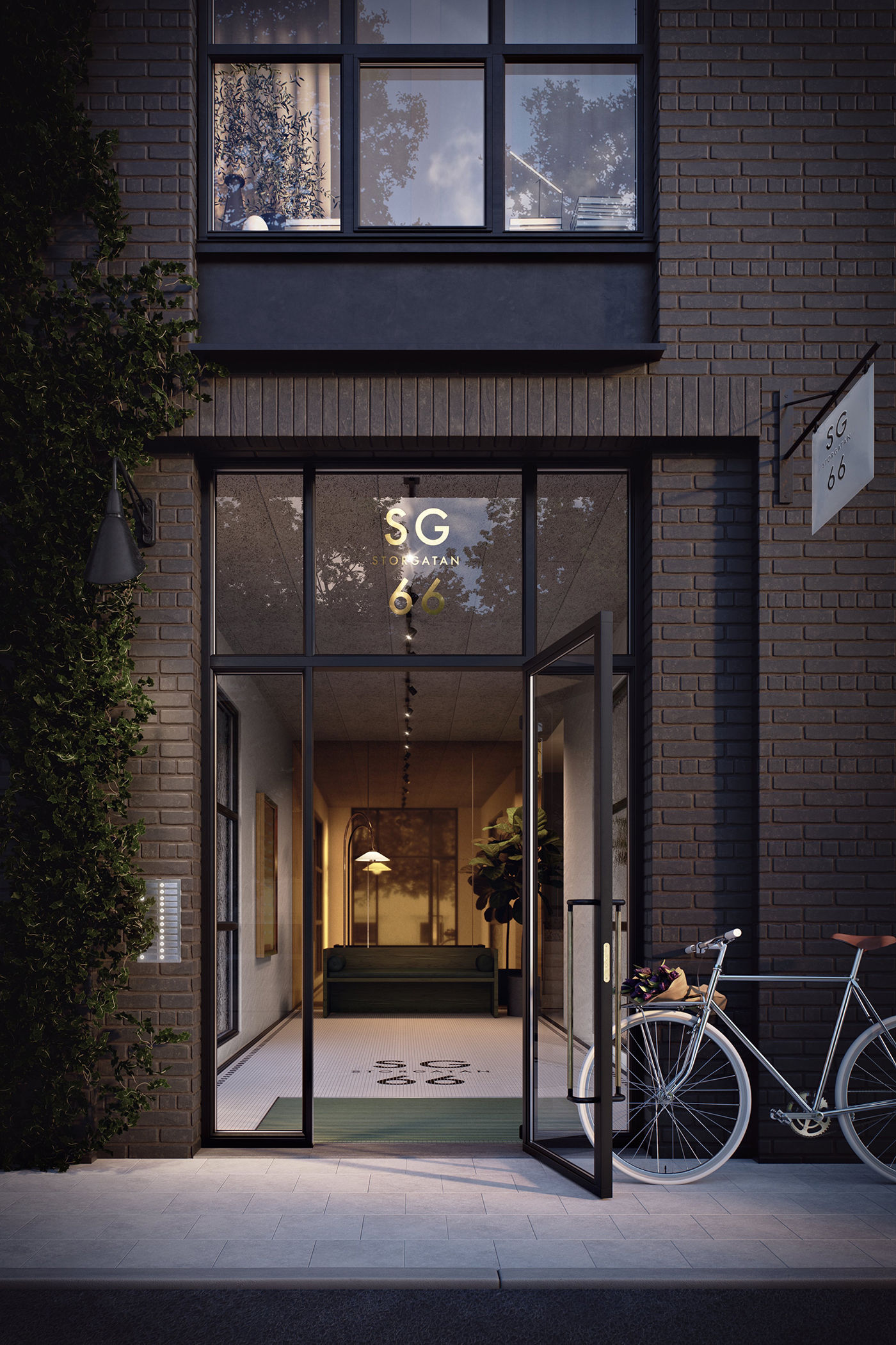 Storgatan 66 is a meeting place centrally located in Sundsvall. Here, apartments are being built, which are characterized by an industrial vibe with generously sized living areas. The apartments have bright hardwood floors, locally manufactured furnishings and large rooftop terraces, balconies and loggias with a conservatory-esque feeling. The house has a body of solid, sharp brick architecture and windows inspired by industrial properties. At the top are three penthouse floors, which are set apart in shimmering brick.