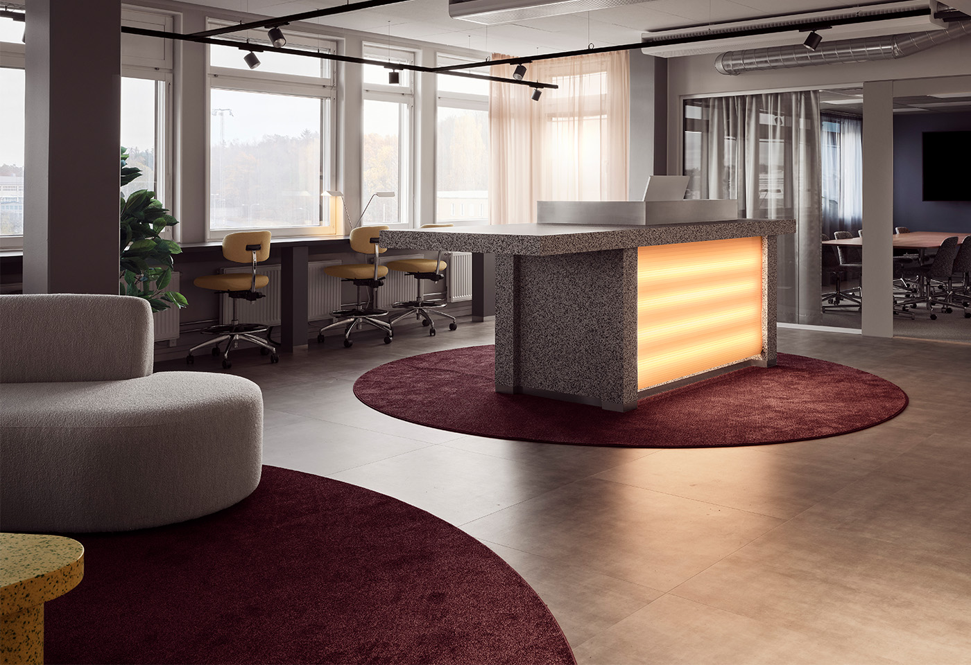 Här finns inbjudande sociala ytor och rum för arbete – individuellt eller i grupp. Kontoret ska erbjuda medarbetarna en funktionell och attraktiv arbetsmiljö.
